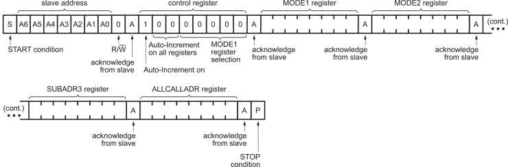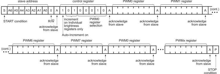 Ostatnim sposobem jest adresowanie grupowe rejestrów PWM po wcześniejszej konfiguracji układu zgodnie z rysunkiem 4.