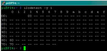 Po zainstalowaniu i restarcie, w pierwszej kolejności sprawdzamy w konsoli prawidłowe działanie I²C komendą: