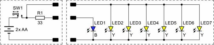 Układ jest bardzo łatwy w montażu i zasilany bezpiecznym napięciem, którego źródłem są dwie baterie AA (LR6). Brak jakiegokolwiek układu scalonego predysponuje zestaw jako idealny dla początkujących elektroników. Jednakże nic nie stoi na przeszkodzie, by i starsi stażem złożyli taką elektroniczną ozdobę w ramach rozrywki w czasie wolnym od codziennej pracy.