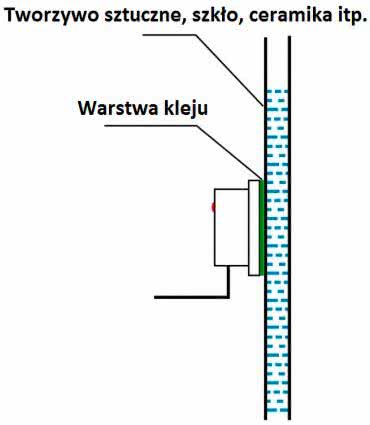 Podczas montażu układu należy przewidzieć miejsce zarówno na samą płytkę drukowaną, jak i na czujnik XKC-Y25-T12V. Należy go przykleić od zewnętrznej strony wanny wykonanej z akrylu lub innego nieprzewodzącego materiału tak, jak pokazano na rysunku 4. Klej powinien zapewniać dobre przyleganie czujnika, a jego warstwa winna być możliwie cienka. Czujnik należy umieścić na żądanej wysokości lustra wody w wannie lub nieco wyżej - opis dalej.