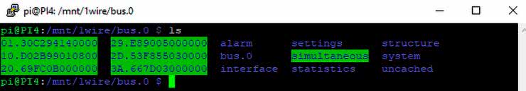 Po ponownym restarcie możemy sprawdzić urządzenia zamontowane w katalogu /mnt/1wire, a w przypadku mostka DS2482-100 w podkatalogu bus.0 (rysunek 5).