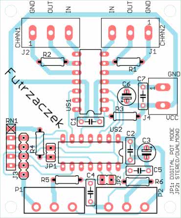 - dwa ośmiobitowe potencjometry cyfrowe o rezystancji 10 kΩ (lub innej, po zmianie układu scalonego),