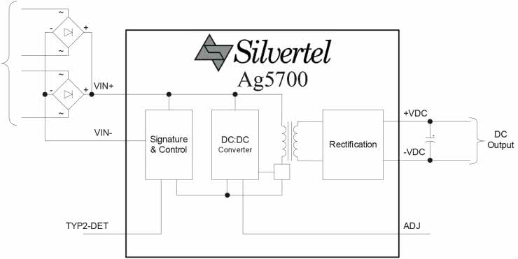 Ag5712 pozwala spełnić wymogi IEEE802.3 PoE, przy utrzymaniu pełnej kompatybilności z IEEE802.3bt, IEEE802.3at i IEEE802.3af. Ag5712 jest wstępnie skonfigurowany jako urządzenie typu 2 klasy 4, umożliwia pobieranie do 30 W mocy z PSE, przy nominalnym napięciu wyjściowym 12 V i sprawności do 89%. Wbudowana przetwornica zabezpieczona została przed przeciążeniem oraz zwarciem wyjścia, a także przegrzaniem.
