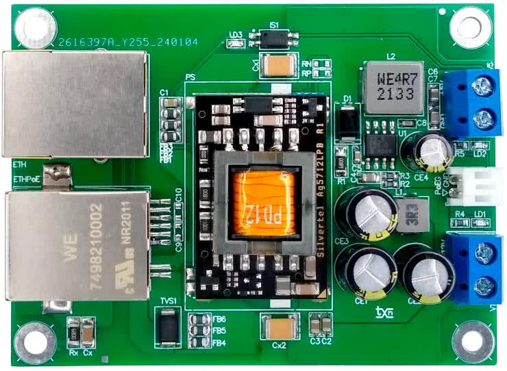 - PS: przetwornica PoE+ Silvertel 12 V/24 W(30 W), typ Ag5712LPB