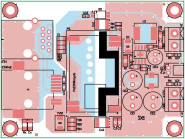 Zasilacz zmontowano na dwustronnej płytce drukowanej, a rozmieszczenie elementów przedstawiono na rysunku 3. Montaż nie wymaga opisu, kondensatory C9, C10 nie są lutowane.