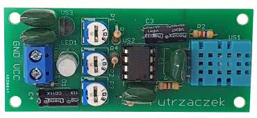 Jeżeli podczas komunikacji z czujnikiem DHT11 wystąpiłby błąd, dioda LED1 będzie co kilka sekund emitować krótkie, czerwone błyski. Oznacza to uszkodzenie połączeń lub któregoś z elementów na płytce – układ zgłasza konieczność dokonania serwisu.