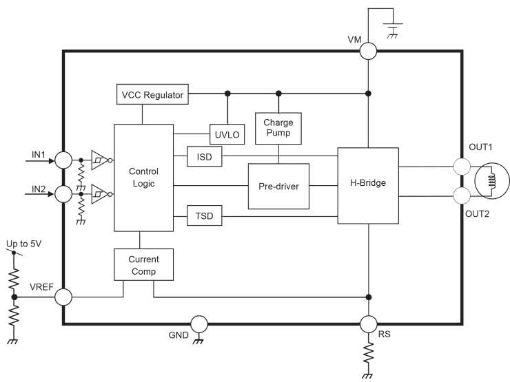 Strukturę wewnętrzną układu TB67H45x pokazano na rysunku 1.