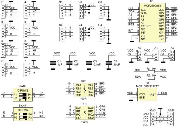 - U1: MCP23008SS (SSOP20_230)