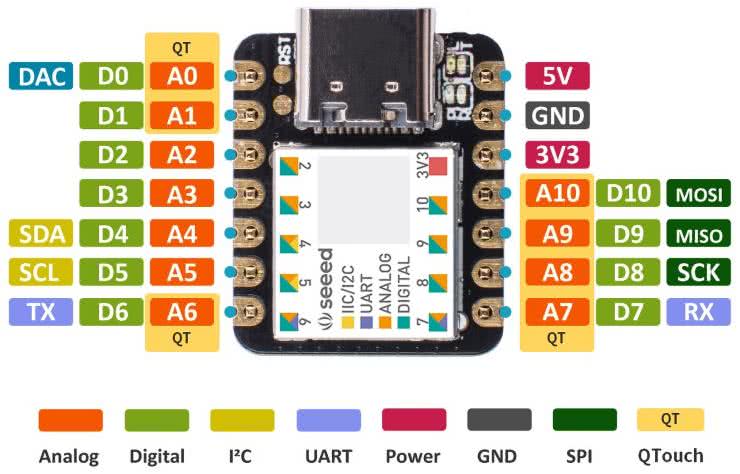 Cała rodzina XIAO i QT PY charakteryzuje się zgodnością wyprowadzeń, niewielkimi wymiarami płytki 22×18 mm oraz komunikacją z użyciem złącza USB typu C. W serii tej nie ma niestety modułów z klasycznymi procesorami AVR, które w dalszym ciągu cieszą się niesłabnąca popularnością.