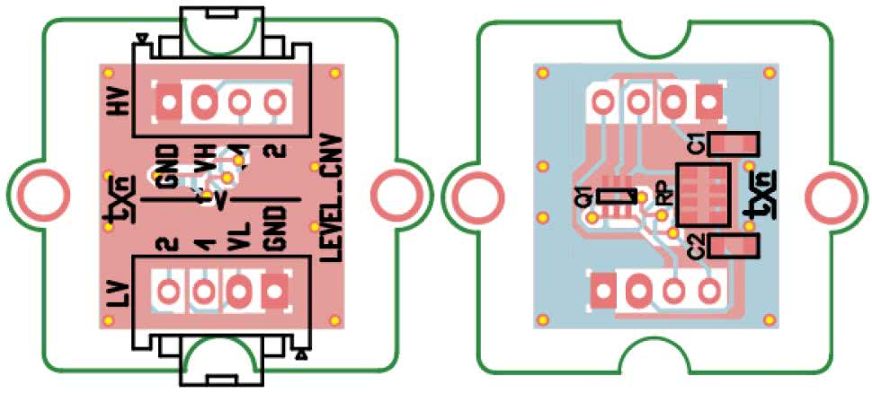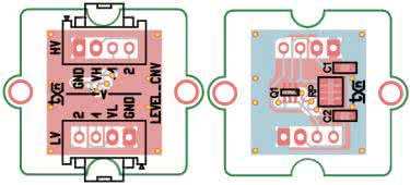 Magistrala I²C (zgodna z logiką o napięciu 3,3 V), wraz z napięciem zasilania, doprowadzona jest do translatora poprzez złącze LV. Interfejs 5-woltowy jest dostępny na złączu HV.