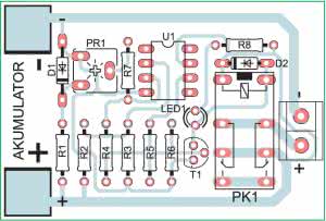Uruchomienie układu sprowadza się tylko do ustawienia za pomocą potencjometru montażowego odpowiedniego napięcia, które spowoduje załączenie przekaźnika. Napięcie to należy wyliczyć wg przykładu omówionego poniżej dodając margines bezpieczeństwa 0,5–1 V. Układ posiada histerezę o wartości ok. 1 V aby w momencie odłączenia obciążenia, kiedy to napięcie na zaciskach wzrasta układ ponownie się nie załączył. W modelowym układzie napięcie odłączenia to 11 V natomiast do ponownego załączenia napięcie musi wzrosnąć o 1 V. W tab. 1 przedstawione są napięcia końcowe na ogniwach, których nie należy przekraczać. Na przykład napięcie końcowe rozładowania akumulatora 1,2 Ah, z którego pobierany jest prąd 0,4 A (0,33 C) wynosi 6 ogniw × 1,70 V=10,2 V. Na koniec warto nasz układ przetestować na regulowanym zasilaczu i sprawdzić czy przekaźnik reaguje prawidłowo na zmianę napięcia i ewentualnie skorygować nastawy. Układ należy podłączyć pomiędzy akumulatorem a „zapalniczkowym” zasilaczem GPSa.