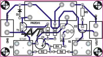 Zadaniem tego prostego układu jest automatyczne odłączanie dowolnego urządzenia od zasilania po upływie określonego czasu. Ma to istotne znaczenie, jeżeli źródłem zasilania jest akumulator lub bateria. Układ nie pobiera żadnego prądu, gdy jest nieaktywny. Do obsługi automatu wykorzystano dwa przyciski. Naciśnięcie przycisku S1 powoduje, że rezystor R2 zostaje połączony z dodatnim biegunem zasilania i tranzystor T1 przechodzi w stan przewodzenia.