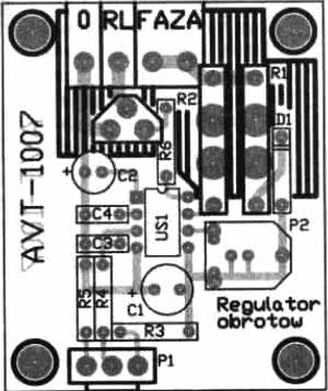 Na wkładce przedstawiono mozaikę ścieżek płytki drukowanej regulatora, a na rysunku 3 rozmieszczenie elementów.