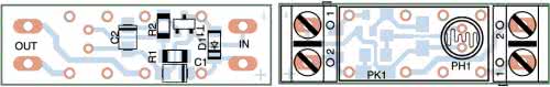 Elementy SMD są montowane od strony lutowania, natomiast fotorezystor, przekaźnik i złącza od strony elementów. Fotorezystor jest montowany pod przekaźnikiem, dlatego jego montaż i odpowiednie wygięcie jego doprowadzeń należy wykonać w pierwszej kolejności, przed montażem przekaźnika.