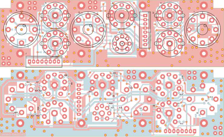 Płytka jest dwustronna, z metalizacją otworów, na laminacie o powiększonej grubości. Rozmieszczenie elementów przedstawia rysunek 2.