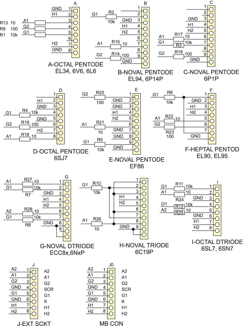 - R1…R8, R10…R12: 10 kΩ