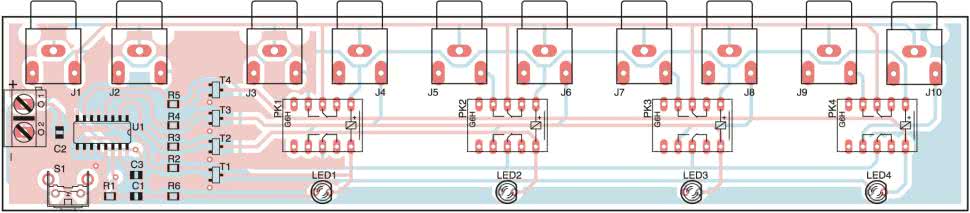 Schemat elektryczny selektora pokazano na rysunku 1, natomiast montażowy na rysunku 2.