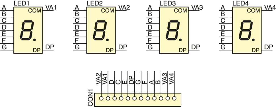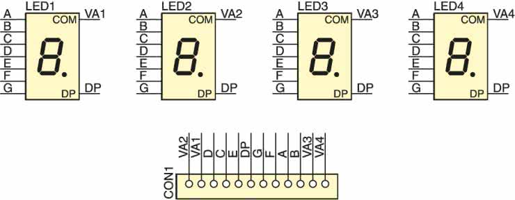 - LED1...LED4: wyświetlacze 7 mm lub 25 mm (w zależności od wersji)