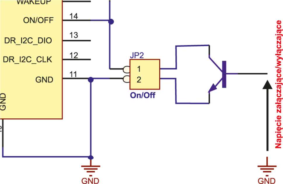Do punktów lutowniczych JP2 trzeba dołączyć mikroprzełącznik lub – najlepiej za pomocą tranzystora dołączonego w sposób pokazany na rysunku 2 – które będą spełniać rolę elektronicznego włącznika/wyłącznika odbiornika L30. Każdorazowe włączenie/wyłączenie odbiornika wymaga podania na wejście ON/OFF modułu zbocza opadającego i utrzymania stanu „0” logicznego przez co najmniej 1 ms.