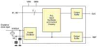 Głównym elementem opisywanego generatora jest układ powielacza (mnożnika) częstotliwości ICS512, który do powielania częstotliwości wykorzystuje pętlę fazową PLL (Phase-Locked-Loop). Schemat blokowy wyjaśniający zasadę pracy układu zamieszczono na rysunku 1. Jest to prosty i tani sposób generowania sygnałów wysokiej częstotliwości LOCO (Low Cost Oscillator) zastępujący oscylator w wielu systemach elektronicznych.