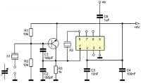Schemat ideowy generator HF z powielaniem częstotliwości pokazano na rysunku 3. Układ modelowy był testowany z rezonatorami ceramicznymi 3,58 MHz i kondensatorem zmiennym o maksymalnej pojemności 250 pF. Uzyskane wartości częstotliwości wyjściowych zamieszczono w tabeli 2.