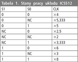Możliwe stany pracy układu ICS512 zamieszczono w tabeli 1.