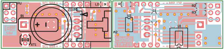 RTC_Expander zmontowano na dwustronnej płytce drukowanej. Rozmieszczenie elementów przedstawia rysunek 2.