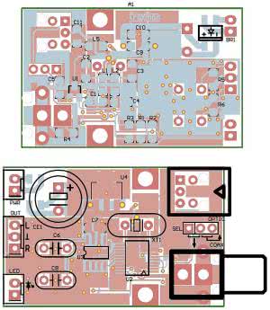 Układ zmontowano na niewielkiej płytce drukowanej. Sposób montażu jest typowy i nie wymaga opisu. Rozmieszczenie elementów na płytce drukowanej pokazano na rysunku 2. Poprawnie zmontowany układ nie wymaga uruchomienia. Po sprawdzeniu poprawności montażu można dołączyć źródło S/PDIF, zasilanie i cieszyć się muzyką.