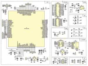 Schemat zestawu, podzielony na części „mikrokontrolerową” i "peryferyjną", pokazano na rysunku 1. Sercem modułu jest procesor U1 firmy Atmel typu ATmega2560 taktowany za pomocą rezonatora XT2 (16 MHz). Dodatkowo został zastosowany kwarc XT1 (32768 Hz) dla realizacji funkcji zegara czasu rzeczywistego, przy wykorzystaniu zasobów sprzętowych procesora U1.