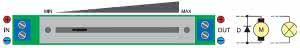 Przy współpracy z obciążeniem o charakterze indukcyjnym, w praktyce z silnikami prądu stałego (komutatorowymi) niezbędne jest dołączenie równolegle do wyjścia "szybkiej" diody półprzewodnikowej, np. Schottky'ego. Bez diody D na drenie tranzystora T1 w chwili jego wyłączania pojawiałyby się impulsy dodatnie o napięciu znacznie większym niż napięcie zasilające. Miałyby one amplitudę kilkudziesięciu woltów, co mogłoby doprowadzić do uszkodzenia tranzystora. Przy sterowaniu jasnością "zwykłych" żarówek niema potrzeby dołączania żadnych dodatkowych elementów zewnętrznych.