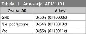 W dalszej części wykorzystam tylko najbardziej istotne informacje potrzebne do szybkiego uruchomienia i sprawdzenia układu. Moduł ma ograniczone adresowanie do trzech możliwości ustalanych zworą A0 (tabela 1).