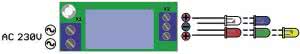 Błąd może zaowocować uszkodzeniem elementów, a nawet ich wybuchem. Na rysunku 3 pokazano sposób i kolory dołączanych diod LED do złącza oznaczonego X2. Dla zwiększenia bezpieczeństwa użytkowania moduł można umieścić w rurce termokurczliwej, którą następnie należy obkurczyć gorącym powietrzem.