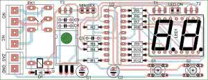 Pracą urządzenia steruje mikrokontroler ATtiny26 taktowany wewnętrznym sygnałem zegarowym. Stan urządzenia jest obrazowany na podwójnym wyświetlaczu siedmiosegmentowym ze wspólną anodą. Katody 2-cyfrowego, multipleksowanego wyświetlacza LED dołączono przez rezystory ograniczające prąd R5...R12 do portów PA0... PA7.