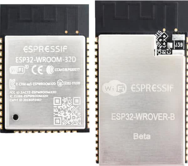 Układ ESP32 dostępny jest przede wszystkim w postaci modułów - małych płytek z charakterystycznym metalowym ekranowaniem, anteną w postaci ścieżki na pcb (lub z miniaturowym złączem antenowym) oraz szeregiem wyprowadzeń-styków na krawędziach płytki. Pod ekranowaniem znajduje się procesor ESP32, pamięci FLASH i RAM oraz kilka elementów biernych niezbędnych do pracy tego mikrosystemu. Dostępne są dwie główne wersje, nazwane WROOM oraz WROVER, widoczne na fotografii 2.