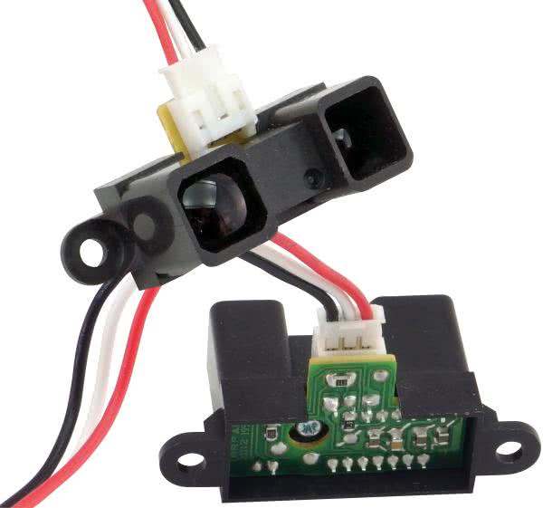 Czujnik GP2Y0A02YK0F, ze względu na wyjście napięciowe, jest prosty w obsłudze i może pracować z różnymi typami kontrolerów wyposażonych w przetwornik ADC. Cechuje się wąską wiązką podczerwieni i dosyć stabilnymi odczytami, mało wrażliwymi na poziom zewnętrznego oświetlenia. Wadą jest wyraźnie spadająca rozdzielczość przy pomiarach na dystansach dłuższych niż 1 metr.