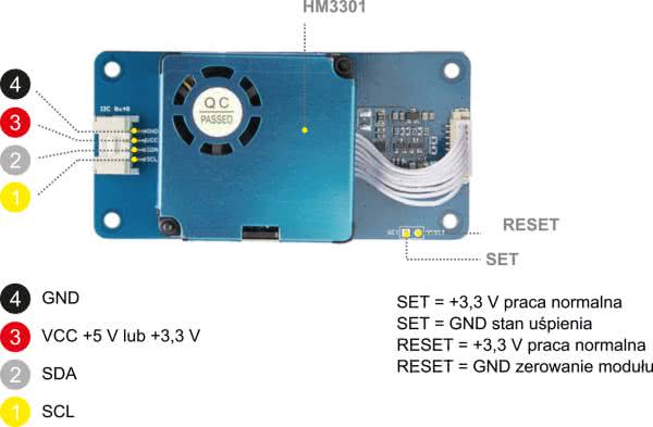 Wyprowadzenia zasilania i magistrali I2C zostały pokazane na rysunku 2.