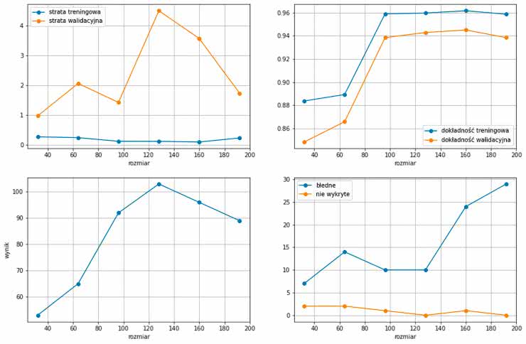 Trenujemy więc modele dla różnego rozmiaru warstwy ukrytej: od 32 do 192 neuronów, a następnie sprawdzimy ich działanie na zebranym wcześniej przebiegu. Uzyskane wyniki prezentuje rysunek 11.