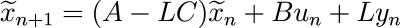 Pierwsze dwa składniki to po prostu symulacja zidentyfikowanego modelu. Trzecim składnikiem, a zarazem najważniejszym, jest macierz L, która wprowadza korektę na podstawie różnicy między zmierzonym wyjściem z modelu a wyjściem z symulowanego układu. Wartości jej współczynników możemy uzyskać za pomocą polecenia: