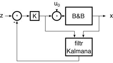 Filtr Kalmana–Bucy jest obserwatorem stanu. Przy założeniu, że zakłócenia działające na obiekt są gaussowskie, zapewnia on optymalną estymatę. Teoretyczny opis filtru można znaleźć w [10]. My zaprojektujemy filtr, używając biblioteki PyControl [11]. Wszystkie obliczenia znajdują się w jupiter/LQG for 3D printed model.ipynb [12].