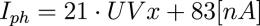 Prąd fotodiody Iph w zależności od indeksu UV można obliczyć ze wzoru:
