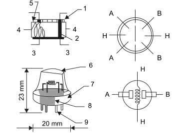 - Rh (rezystancja wewnętrzna): 33 Ω ± 5% {31 Ω ± 3 Ω}