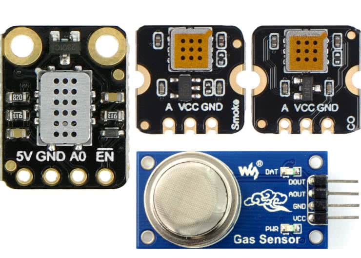 Seria Fermion firmy DFRobot obejmuje wiele różnych typów czujników gazu, opracowanych z zastosowaniem technologii MEMS (HCHO, H2, CO, CH4, VOC, NH3, NO2, H2S, EtOH, dym, różne zapachy). Charakteryzują się one niskim napięciem zasilania i małymi rozmiarami. Moduły SEN563-SEN574 mają taki sam układ płytki oraz pełną dokumentację czujnika oraz PCB.