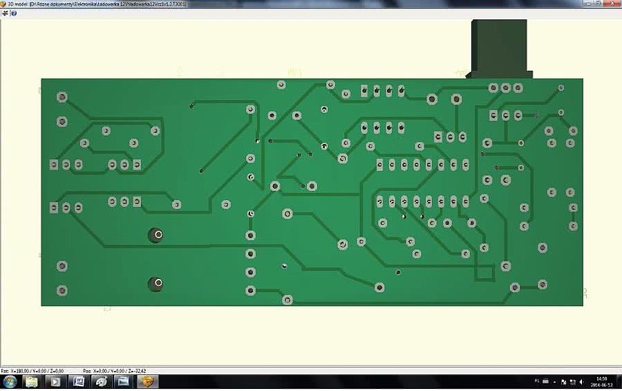 Rysunek 3. Widok ścieżek płytki ładowarki od strony miedzi (zrzut ekranu z programu Target 3001! V15)