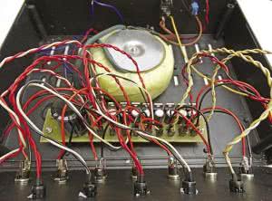Napięcie jest kierowane do wszystkich stabilizatorów. Na wyjściu każdego stabilizatora włączono kondensator ceramiczny 100 nF/50 V i elektrolityczny 1000 µF/25 V dla stabilizatorów 12-woltowych i 1000 µF/16 V dla stabilizatorów na 9-woltowych.