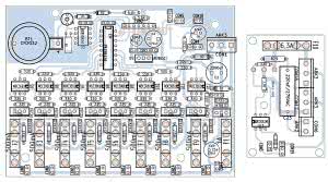 Płytkę czołową montujemy do panelu czołowego obudowy za pomocą tulei dystansowych M3×12. Schemat montażowy płyty głównej i płytki radiatora pokazano na rysunku 11. Zmontowano je płytkach jednostronnych przy użyciu komponentów przewlekanych. Zaczynamy od zamontowania zworek na obydwu płytkach, potem elementy najmniejsze rezystory, kondensatory i dławik.