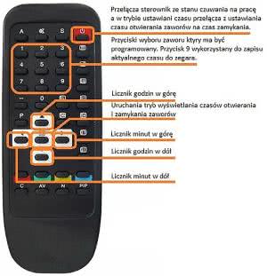 Sterownik ma wejście dla czujnika deszczu. Jeśli podczas podlewania spadnie deszcz, podlewanie zostanie wstrzymane. Aktualny czas oraz godziny otwierania i zamykania zaworów można ustawić za pomocą pilota z kodem RC5.