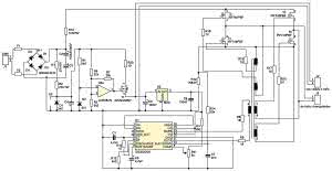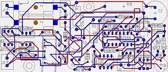 Schemat ideowy kontrolera ładowarki pokazano na rysunku 1, natomiast płytki transformatora Tr2 na rysunku 2. Kontroler bazuje na układzie scalonym sterownika SG2525 (lub SG3525), który jest wykorzystany do wytworzenia przebiegu prostokątnego podawanego na transformator sterujący tranzystorami kluczującymi przebieg napięcia na transformatorze głównym Tr2. Dodatkowo, układ SG spełnia funkcję regulatora napięcia poprzez regulację współczynnika wypełnienia impulsów podawanych na tranzystory a także ogranicza prąd do wartości ustalonej za pomocą rezystora R12.