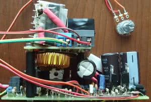 Urządzenia o takiej mocy powinny być wyposażone w szeregowo połączony z zasilaniem 230 VAC dławik, np. taki, jak do niedawna był stosowany w zasilaczach komputerowych (tzw. filtr PFC służący do wygładzania szpilek prądu ładujących kondensatory filtrujące). Rdzenie po nawinięciu powinny być ściśnięte paskiem blachy skręconym śrubami lub zlutowanym, lecz oklejenie ich kilkoma warstwami biurowej taśmy klejącej też daje zadowalające rezultaty.