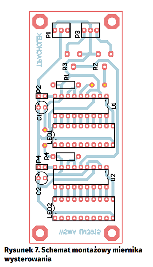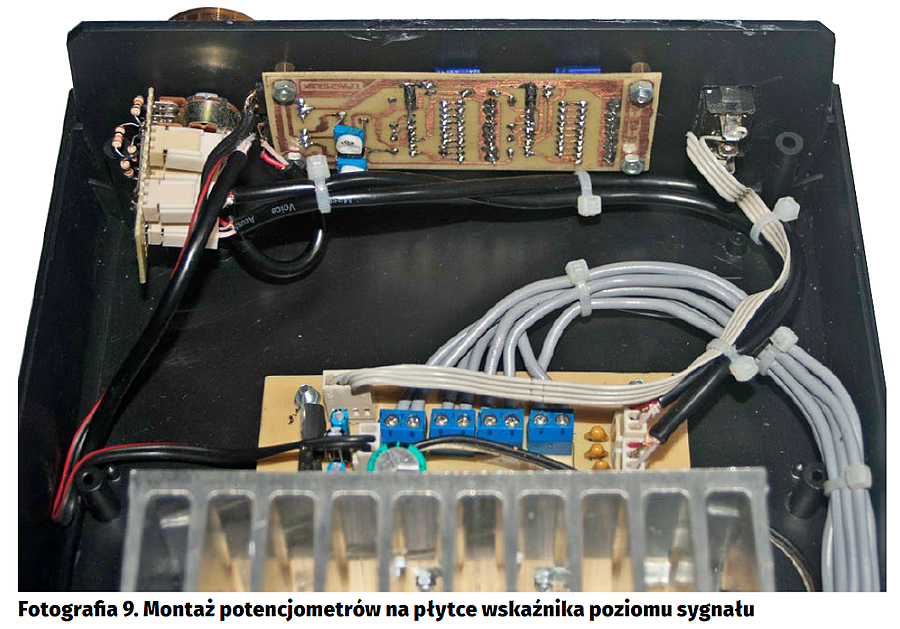 W mierniku poziomu sygnału, potencjometry i złącza wyboru trybu wyświetlania warto zamontować od strony ścieżek, co umożliwi zmiany nastaw po montażu w obudowie (fotografia 8).