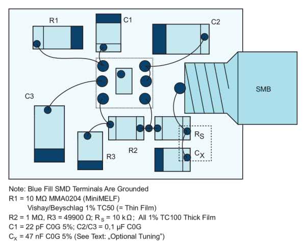 Obszar pętli tworzonej przez elementy R1, C1 i R3 powinien być zminimalizowanym, by zredukować wpływ zakłóceń elektromagnetycznych na układ. Dodatkowo, elementy R1 i C1 powinny być ekranowane przed zewnętrznymi polami elektromagnetycznymi. Dodatkowo, jakkolwiek nie jest to krytyczne, R1 powinien być utrzymywany w miarę stabilnej temperaturze. Zazwyczaj obie te funkcje spełnia pojedynczy ekran, chroniący układ przed EMI i promieniowaniem cieplnym z zewnątrz.